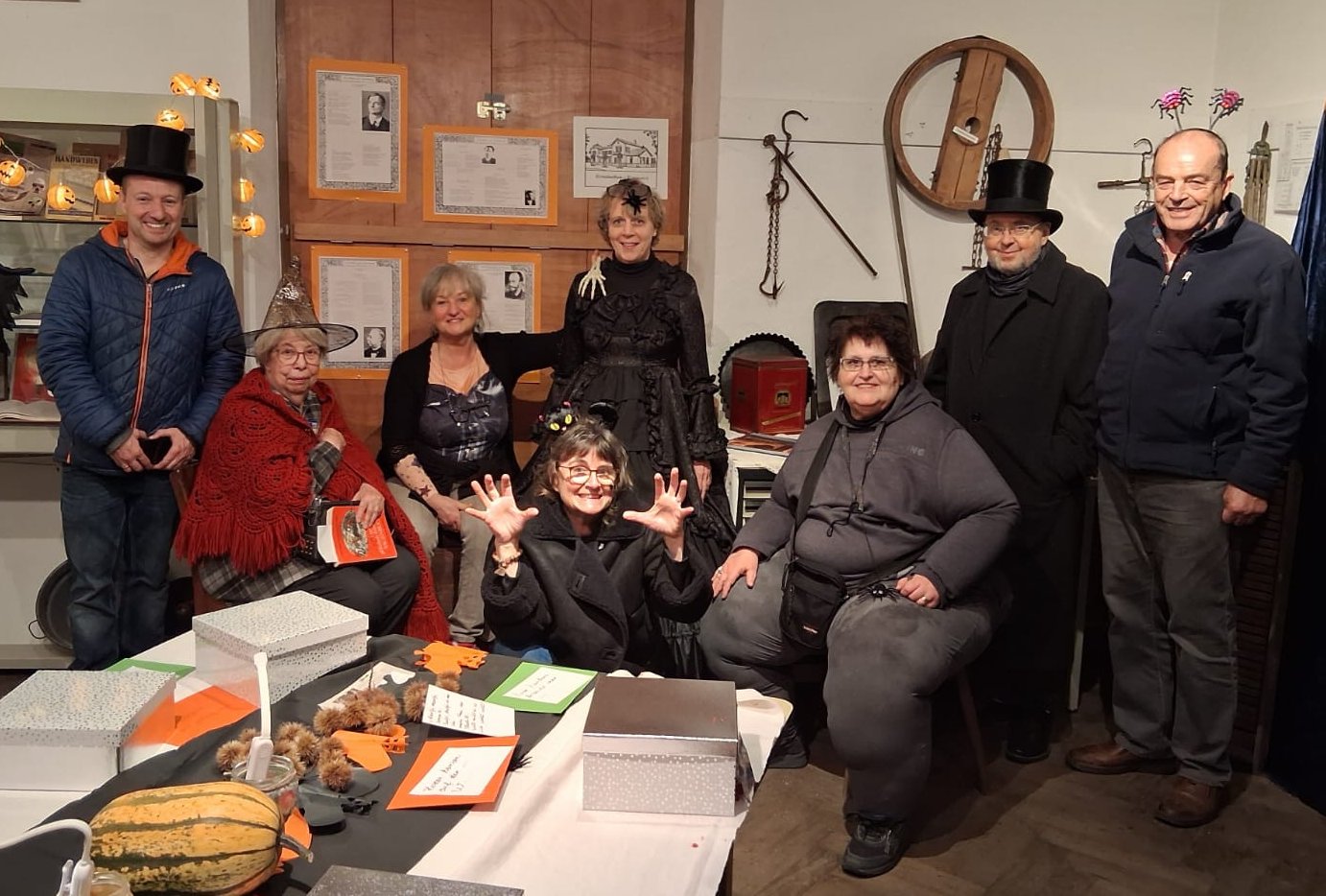 Am Ende waren sich alle einig: Es war ein herrlich gespenstischer Abend voller Spaß, Begegnung und Geschichten, die man so schnell nicht vergisst. Und weil’s so schön war, steht jetzt schon fest – im Jubiläumsjahr 2026 zum 40. Geburtstag des Heimatmuseums wird es, dank Birgits toller Ideen und Bellas tatkräftigem Einsatz, all diese Ideen umzusetzen, garantiert eine weitere Abendöffnung geben. Vielleicht ja noch ein bisschen gruseliger … oder einfach genau so schön wie dieses Mal. Einen besonderen Dank gehört Thea und Heiner, die mit allen gespendeten Kürbisrohlingen der wunderbaren „Lämmlers Kürbisscheune“ für Zutaten und Zier sorgten! Euer Arbeitskreis Heimatmuseum (HS)